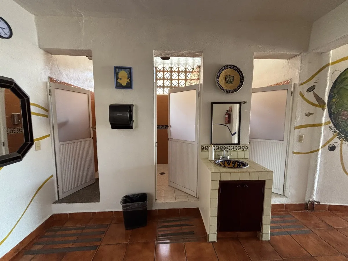 2 showers and bathrooms for men and women