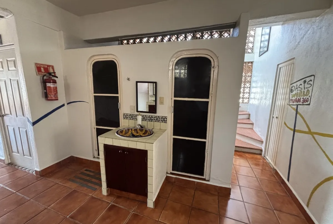 This house is CURRENTLY converted into a HOSTEL, located in a privileged location, as it is only 1 kilometer from the romantic zone, beach, boardwalk, restaurants, you can get there walking, by taxi, bus, or your own car, plus it has 1 back street, as well as its main entrance on the bypass, which will take you to the airport or hotel zone in minutes. This property offers the following:
