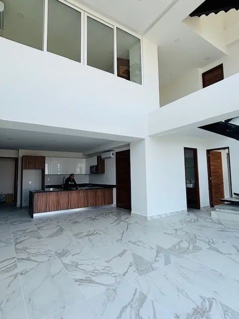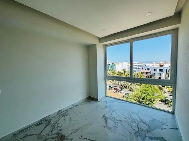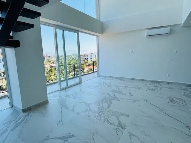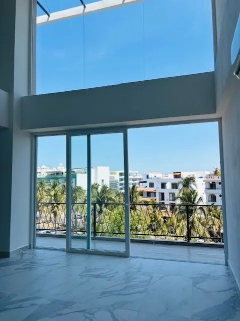This is one of those rare units located just two blocks from the beach, restaurants, bars, the Nuevo Vallarta marina, and perfect for walking lovers. The unit is completely new and sits right next to the Vidanta development. This penthouse features a double-height ceiling in the living and dining area on the main level, along with one bedroom, a full bathroom, a balcony, and air conditioning. The second level offers two bedrooms and two bathrooms, while the third level provides access to a private terrace with pre-installation for a jacuzzi. The building also includes a rooftop common area with a pool and underground parking.